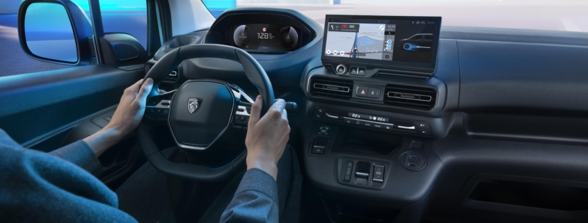 Ces e-Partner utilisent une batterie de 54 kWh brut, dont 50,8 kWh nets. L’autonomie progresse pour atteindre environ 330 kilomètres, soit 50 km de plus qu’auparavant. Esthétiquement, le changement principal concerne la face avant modernisée. Les nouvelles jantes intègrent désormais le logo Peugeot actualisé. Le bouclier a aussi été redessiné, mais la silhouette globale reste identique. Il s’agit là du second restylage (2021 et 2024) pour cette génération du Peugeot Partner. À l’intérieur, Peugeot propose son fameux i-Cockpit. Inspiré des véhicules particuliers, il a été adapté aux besoins des professionnels. Le poste de conduite intègre un petit volant à double méplat, équipé de palettes servant à la récupération d’énergie. Le conducteur profite d’un combiné 100 % numérique de 10 pouces, complété par un écran tactile central de même taille. En résumé, malgré des évolutions discrètes, le Peugeot Partner reste un utilitaire fiable et complet. Il s’adresse aux artisans, livreurs et autres professionnels exigeant un véhicule pratique et moderne, sans rupture avec ses bases techniques éprouvées.